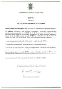 Edital | INSTALAÇÃO DA ASSEMBLEIA DE FREGUESIA (09/2025) – Ordem de Trabalhos