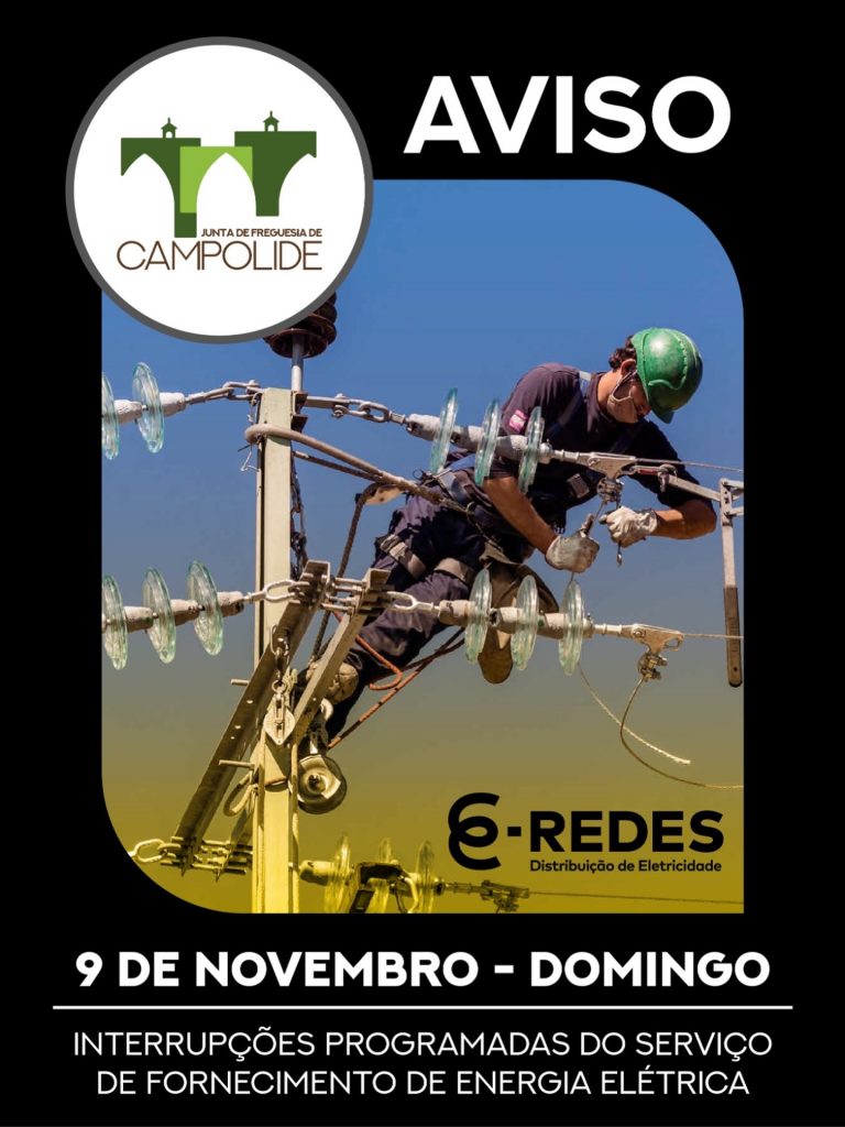 Informamos que, no dia 9 de novembro, entre as 05h00 e as 11h00, serão realizadas intervenções técnicas na rede elétrica pela E-REDES, podendo ocorrer interrupções temporárias no fornecimento de energia nas seguintes zonas de Campolide: