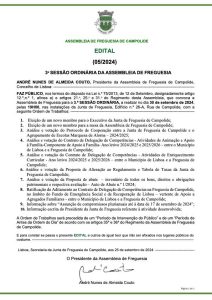 Edital | 3ª sessão ordinária da Assembleia de Freguesia (05/2024) – Ordem de Trabalhos