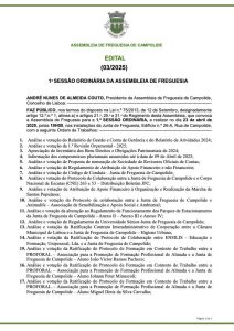 Edital | 1ª sessão extraordinária da Assembleia de Freguesia (01/2025) – Ordem de Trabalhos