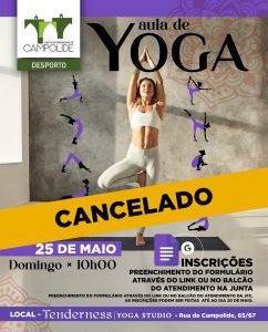Informamos que, por motivos imprevistos, a Aula de Yoga agendada para o próximo domingo, 25 de maio, às 10h00, foi cancelada.